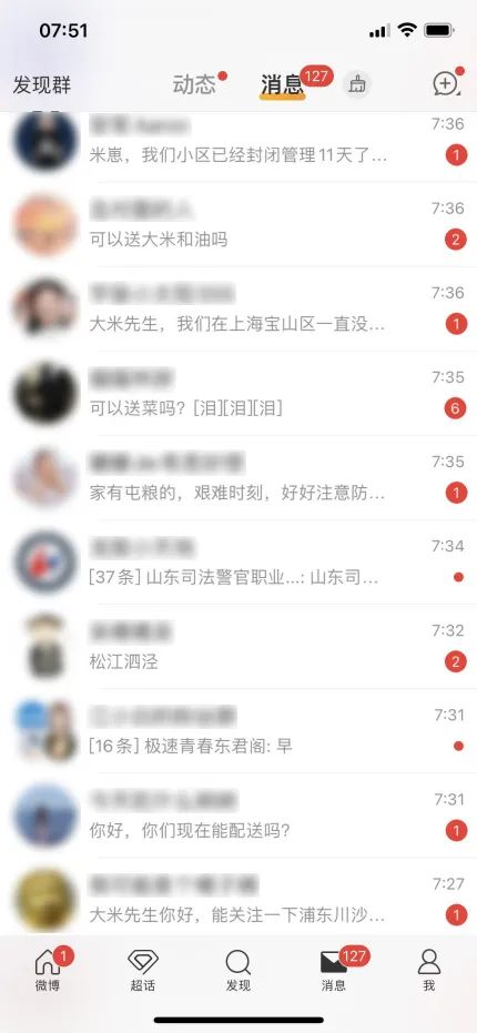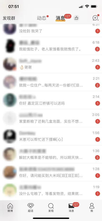 其中,有一个网友在微博上面联系到我们的运营妹妹,说自己从外地到上海来工作,住的是公寓,没有做饭的条件,而之前囤的面、饼干等干粮已经全部都吃完了,问我们能不能想办法帮他。