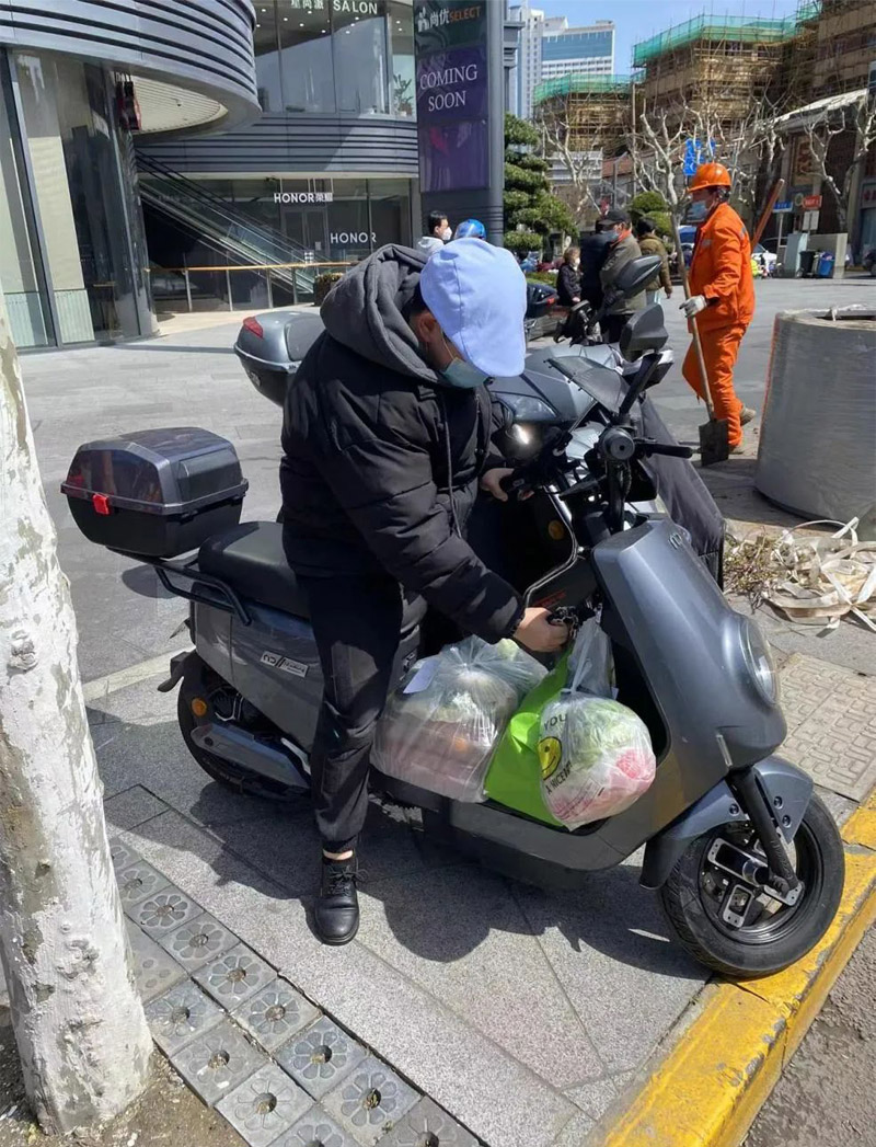 救援队的伙伴只能将自己的电瓶车资源进行整合,临时又采买了几台,组成了一支电瓶车小分队,去为这些求助的市民送餐、送物资。几乎每一辆电瓶车每天都是跑到没电,然后停下来充电,充一会再继续跑。